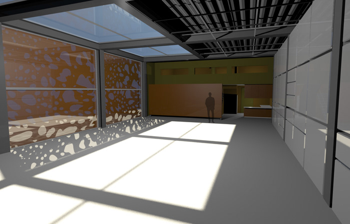 Beacon is a distinctive satellite retail/event space, designed to be flexible and transformable. Individual modular panels, on a track system, can be rolled out in varying configurations, to become retail display cases. For events, display cases are rolled back against the wall, creating a large uniform surface that can be tailored to each event.